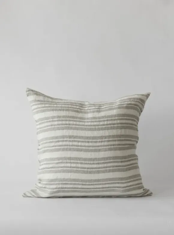 Tell Me Moren kaunis raidallinen tyynynpäällinen pestyä pellavaa. Koko 60x60cm. Toisella sivulla vetoketju.