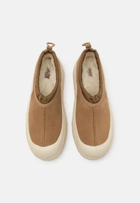 UGGin tennarit miehille. Nämä kengät ovat loistavat kosteaankin keliin. Vedenpitäväksi käsiteltyä nahkaa, käsitellyt saumat ja mukavat korkeat synteettiset kumipohjat tekevät näistä loistavat pieneen sateeseen tai kosteaan lumeen. Klassinen UGG-karva kengän sisällä on miellyttävä ja lämmin. Kiristysnyöri takaosassa.