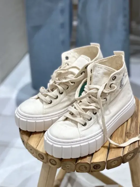 Espanjalaisen Victorian supermukavat varrelliset tennarit. Sävynä luonnonvalkoinen ”cotton”. Kengät on valmistettu kierrätetystä ekopuuvillasta. Kengissä on ihana kesäinen tuoksu, joka säilyy pitkään. <3