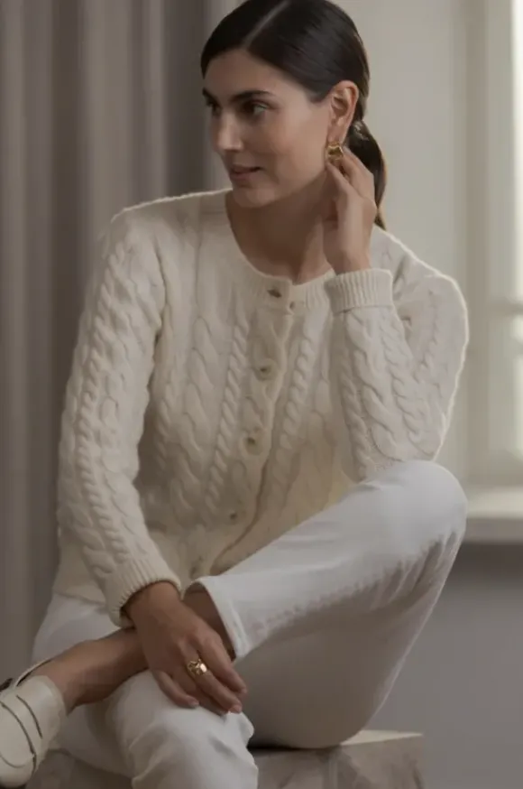 Laadukas villa-cashmeresekoitteinen palmikkoneuletakki, jossa on viisi nappia ja kaunis palmikkokuviointi. Joustava resori hihansuissa ja helmassa. Ajaton design sopii moneen tyyliin.