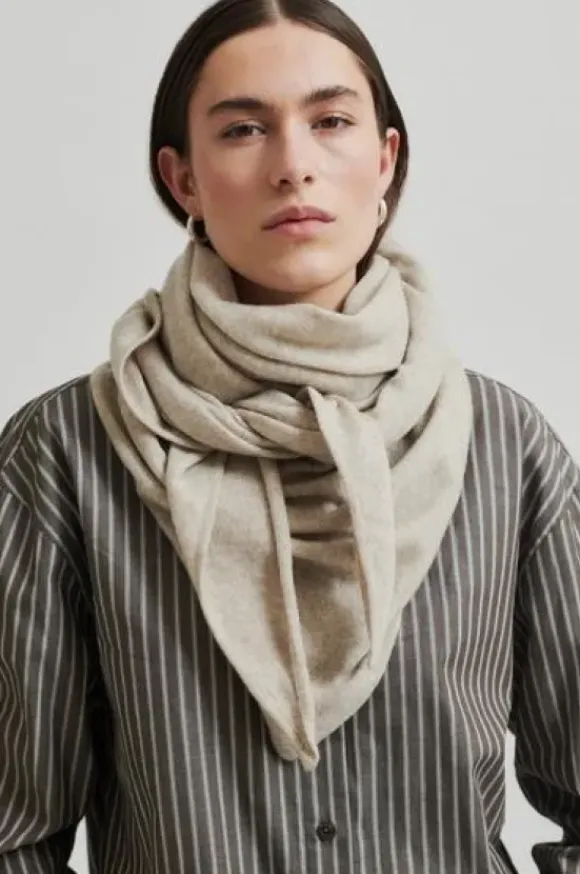 Second Femalen kolmion mallinen huivi, joka on tehty pehmeästä, ohuesta villan ja cashmeren sekoitteesta. Ihana lämmittäjä viileään päivään!