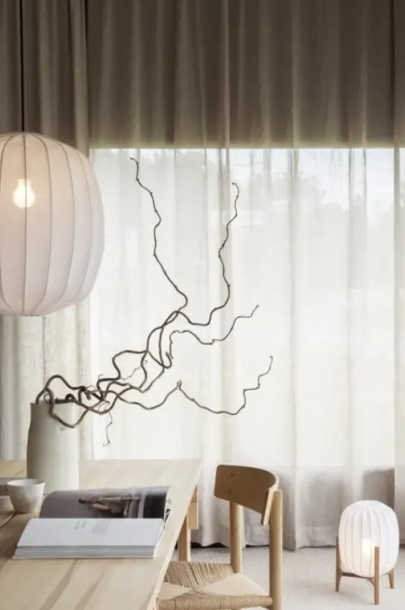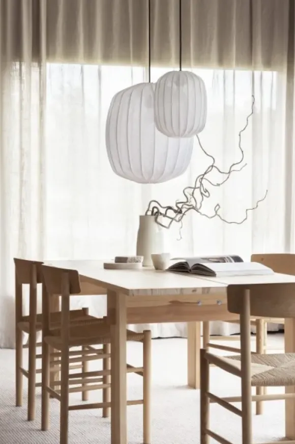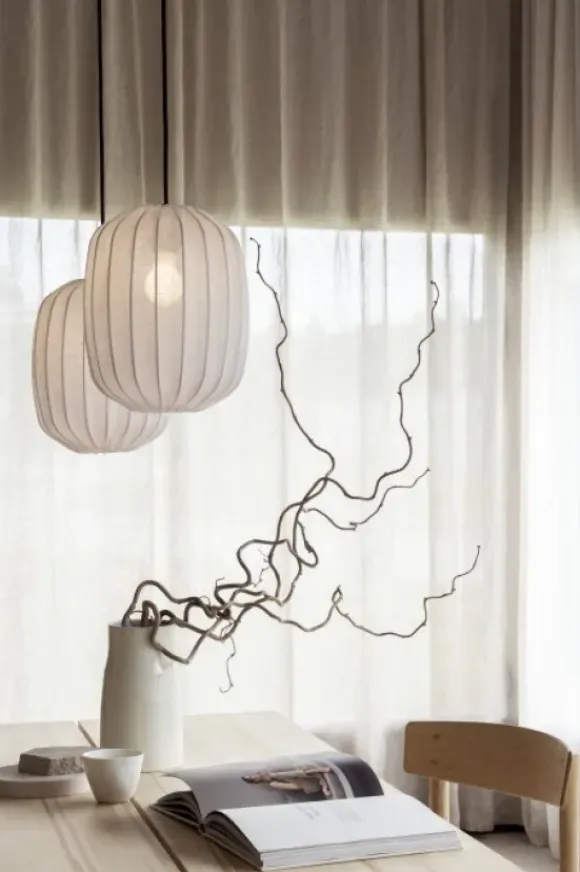 Kaunis kattovalaisin, jossa metallikehikko ja pellavakangas. Valo hohtaa pellavakankaan läpi luoden eläväisen ilmeen. Prisma 25 sopii täydellisesti pienen keittiönpöydän yläpuolelle, pareittain keittiösaarekkeen päälle tai olohuoneen pimeään nurkkaan. Sopii myös ryhmäksi sarjan muiden valaisimien kanssa yhdistettäväksi.