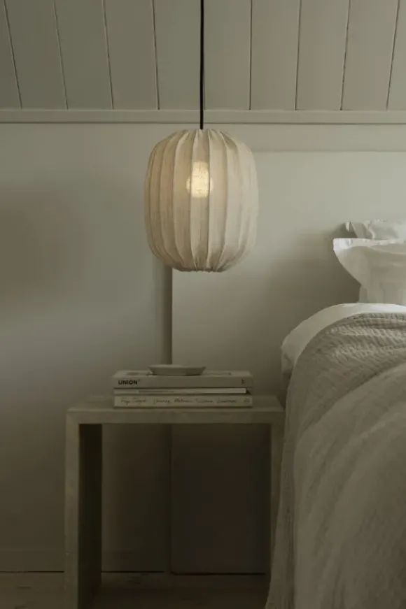 Kaunis kattovalaisin, jossa metallikehikko ja pellavakangas. Valo hohtaa pellavakankaan läpi luoden eläväisen ilmeen. Prisma 35 sopii täydellisesti pienen keittiönpöydän yläpuolelle, pareittain keittiösaarekkeen päälle tai olohuoneen pimeään nurkkaan.